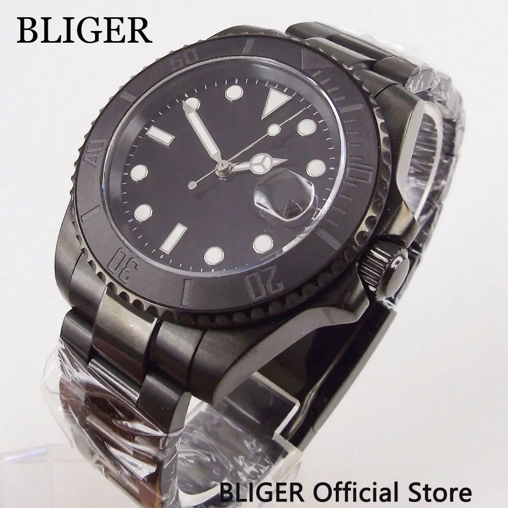 Free shipping 40MM BLIGER Black Sterile Dial PVD Case Mechanical Watch Sapphire Glass Automatic Movement Men's Wa